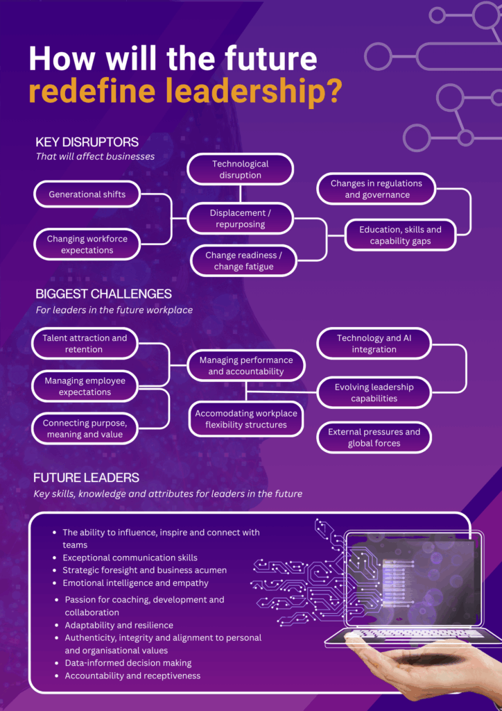 - Technological disruption: AI integration, hybrid work models, and data-informed decision-making are redefining how organisations operate.